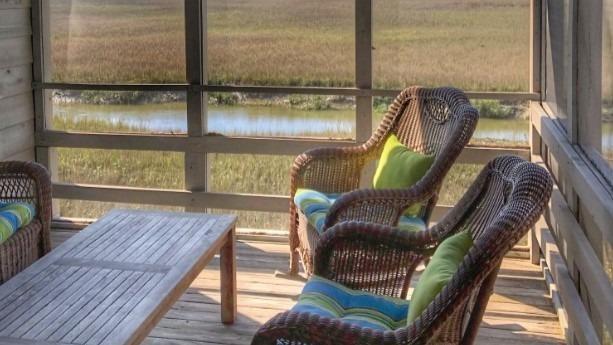 Enjoy waterfront views of Captain Sam's Creek, known for dolphin watching in the tidal creek.